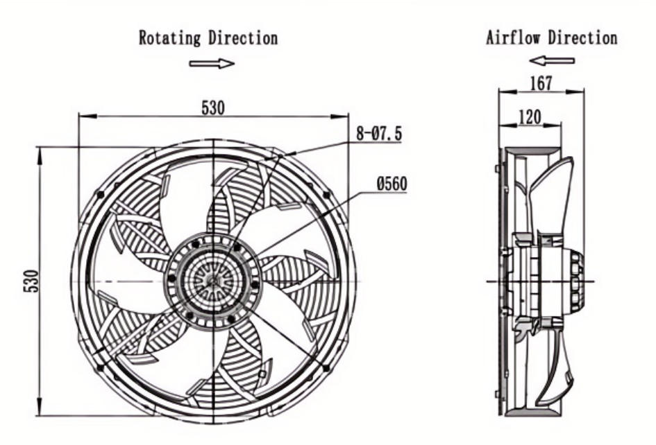 Its quiet operation makes it ideal for indoor and distributed energy storage stations without additional noise disturbance. Supporting 24/7 continuous operation, it perfectly matches the long‑term standby and intermittent high‑load working mode of energy storage systems, ensuring safe operation, stable efficiency, and extended service life of energy storage equipment. It is an ideal matching fan for thermal management in small and medium‑sized energy storage systems.